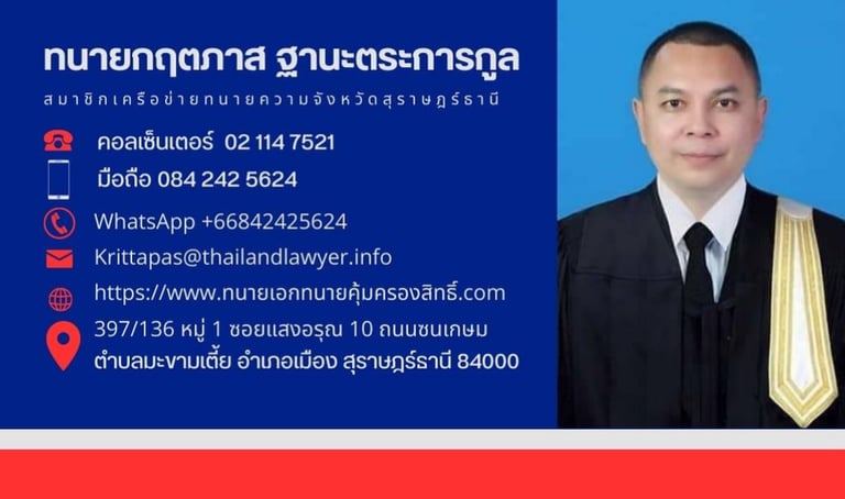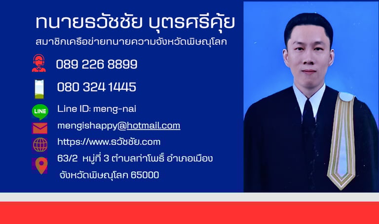 ทนายธวัชชัย บุตรศรีคุ้ย มือถือ: 080 324 1445