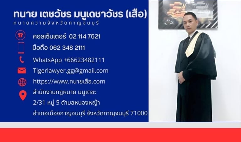 ทนายเตชวัชร มนูเดชาวัชร มือถือ: 062 348 2111