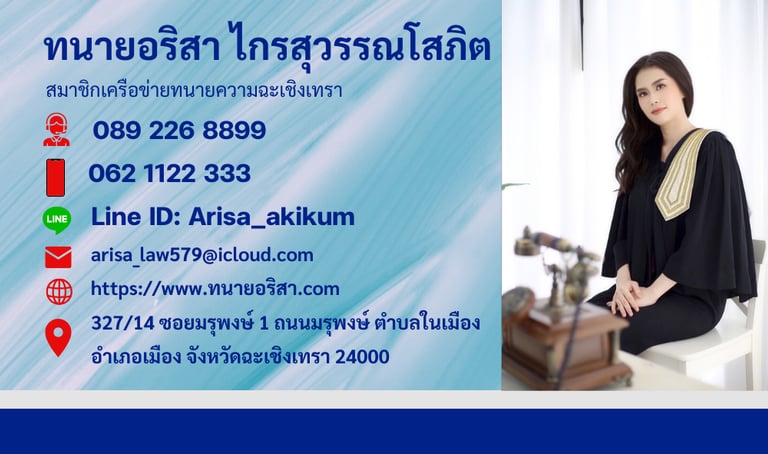 ทนายอริสา ไกรสุวรรณโสภิต มือถือ: 062 1122 333
