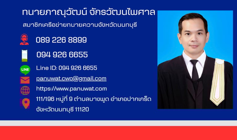 ทนายภาณุวัฒน์ จักรวิฒนไพศาล มือถือ: 094 926 6655